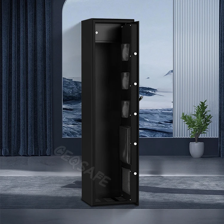 3-8丁用 メタルライフル銃セキュリティキャビネット(スコープ付き/なし対応)、ハンドガン用レスト、ロックボックス、取り外し可能なシェルフ付き |