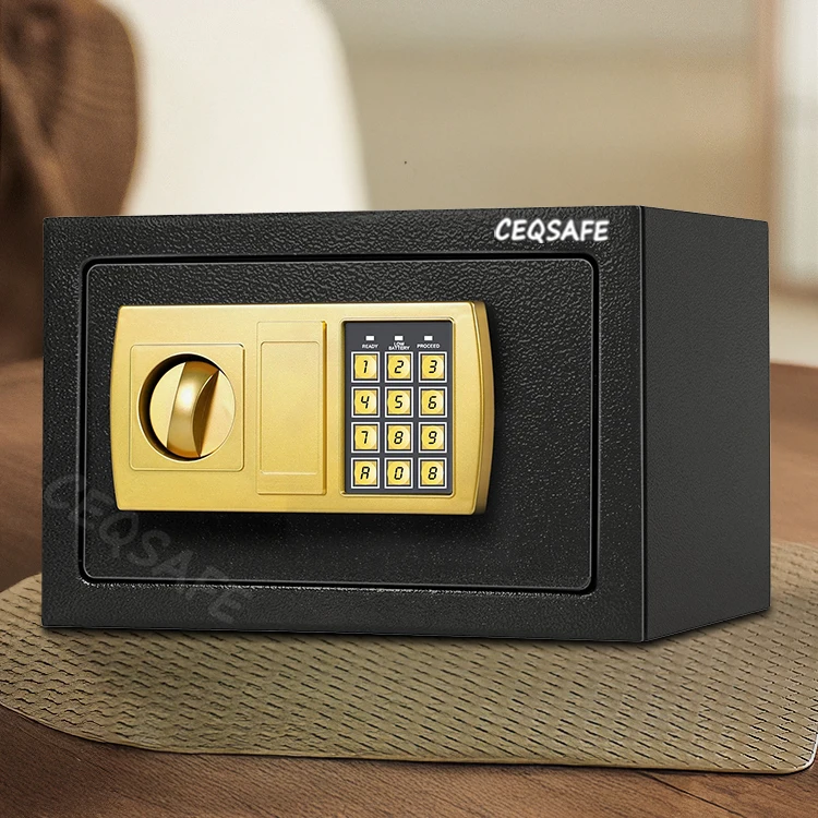 CEQSAFE High Quality Box Hotel Deposit New Lock Open Battery Dead Portable Security Steel Mini Safe Box |